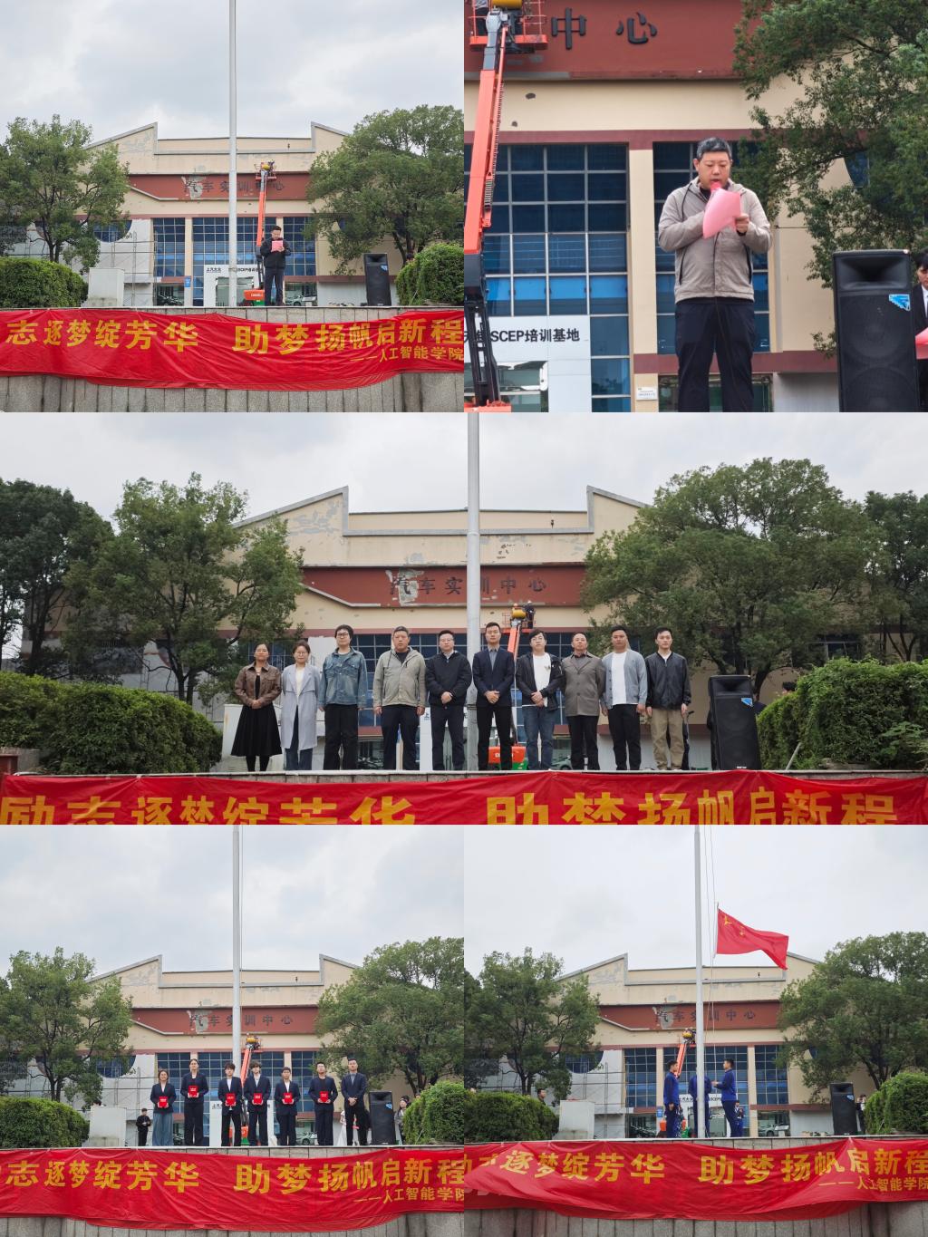 为落实立德树人的根本任务,培养学生励志进取、逐梦前行的奋斗精神,充分发挥资助工作对青年成长的赋能作用与价值引领,10月20日,人工智能学院在军嶂广场举行了“励志逐梦绽芳华 助梦扬帆启新程”为主题的升旗仪式。出席此次升旗仪式的有校团委书记 张吴闯,人工智能学院党总支书记 金志学、党总支副书记颜涛、团总支书记陈志浩、大一年级组长 胡建超、大二年级组长陆丽莎以及各年级辅导员、班主任和全体在校学生。
