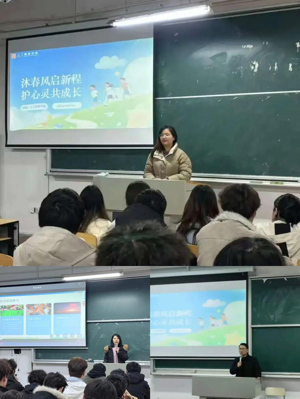 为呵护学生心理健康,引导青年以积极心态拥抱春日与成长,3月15日晚,人工智能学院大一大二各班级在晚自习教室开展“沐春风启新程 护心灵共成长”春季心理健康主题班会,围绕春季心理特点、常见问题表现及科学保健方法展开科普学习,为学生心灵健康撑起温暖保护伞。