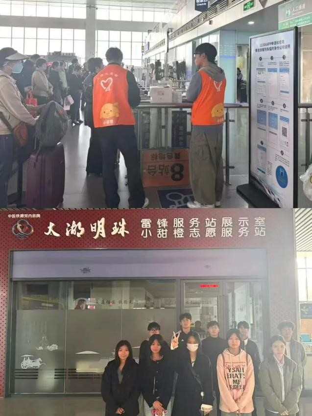 11月2日,现代服务学院“小甜橙”志愿队赴无锡火车站开展志愿服务。志愿者们迅速到岗,在进站口协助旅客完成身份验证与安检,并耐心解答票务咨询,为旅客出行筑牢“第一关”防线。